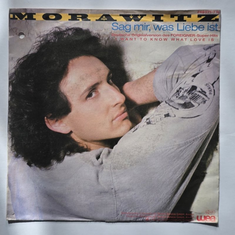 Inventarnummer: PL45-000806 Format: single RPM: 45 Interpret: Morawitz Titel Seite A: Sag mir, was Liebe ist Titel Seite B: Du bist der Wahnsinn Label: WEA Katalognummer: 249 071-7 Matrize A: - Matrize B: - Zustand Platte: EX- Zustand Cover: VG Jahr: 1985 Herkunftsland der Pressung: Deutschland Genre: Pop Hinweis: Diese 1985 erschienene 7" Single mit den Titeln ,,Sag mir, was Liebe ist" und ,,Du bist der Wahnsinn" von Morawitz bietet deutschen Pop aus den 80er Jahren. Der Song "Sag mir, was Liebe ist" ist eine deutsche Version des Foreigner Hits ,,I Want to Know What Love Is". Eine schöne Veröffentlichung für Sammler des Jahrzehnts. Materialtyp: vinyl Jahrzehnt: 1980er Gewicht in g: 40 g Zustandsnotiz: - Differenzbesteuerung nach §25a UStG