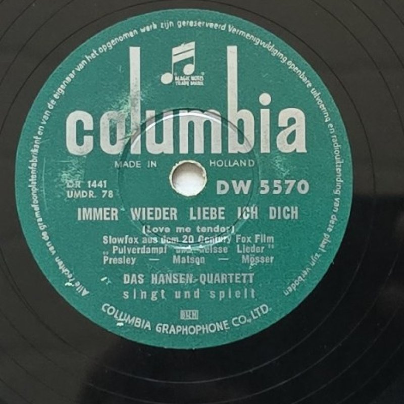 Hinweis: Diese Schallplatte mit dem Hansen-Quartett bietet zwei schöne Titel im Schlagerstil, die besonders Liebhaber deutscher Musik der 1950er Jahre ansprechen dürften. Die Platte wurde in den Niederlanden von Columbia veröffentlicht und kommt mit einem Originalcover.