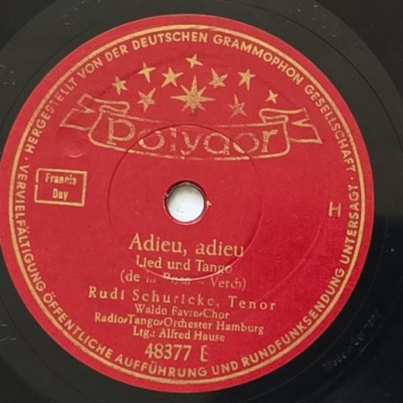 Hinweis: Diese historische Polydor-Schallplatte zeigt Rudi Schurick mit zwei Tangoliedern, begleitet vom Waldo Favre Chor und Radio Tango Orchester Hamburg. Ein schönes Beispiel klassischer Tanzmusik der 1950er Jahre zum Genießen und Sammeln.