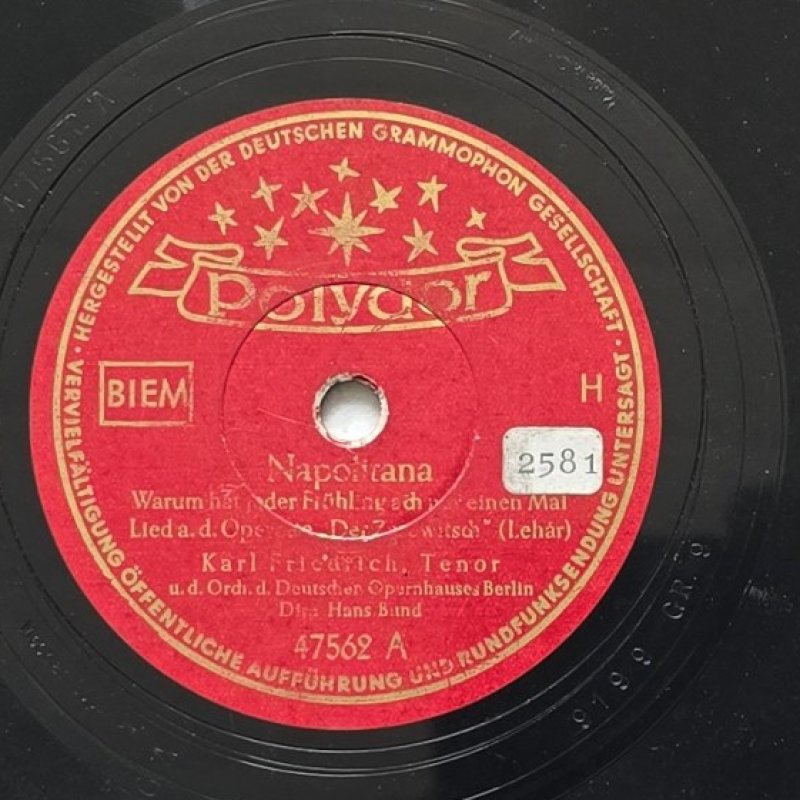 Hinweis: Diese historische Schallplatte bietet klassische Tenor-Arien von Karl Friedrich mit Begleitung des Orchesters des Deutschen Opernhauses Berlin unter der Leitung von Hans Bund. Ideal für Liebhaber klassischer Opern und Tenormusik.