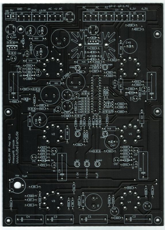 Zeitgemäß bieten sich heute Microcontroler für mancherlei Arbeiten An! Dieser hier ist für den Auto Bias Zuständig. Dadurch entfällt die Manuelle Bias Einstellung. Die EL84 ist eine Sehr robuste Röhren und mit dem Auto Bias zusammen sind sie nahe zu Unzerstörbar. Soll Heißen wenn hier eine Röhre Versagt, dann aus Alters grund.