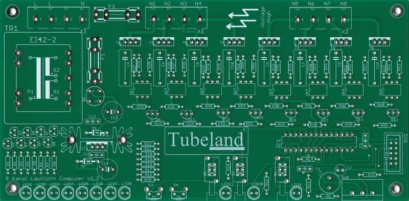 Es ist noch nicht lange her, dass ich die 8-Kanal-Lauflicht-230V-Version entwickelt habe, die verschiedene Lasten antreiben kann. Aufgrund der großen Beliebtheit dieser Schaltung erhielt ich viel Feedback, neue Ideen und es wurde auch zusätzliches Zubehör entwickelt, insbesondere für die Anwendung mit LEDs.