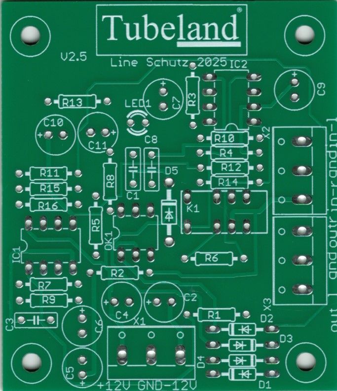 Die Schaltung eignet sich für den Einsatz in Mono- oder Stereo-Konfigurationen und reagiert auf Gleichspannungsanteile im Audiosignal – ohne das Nutzsignal unnötig zu beeinflussen.