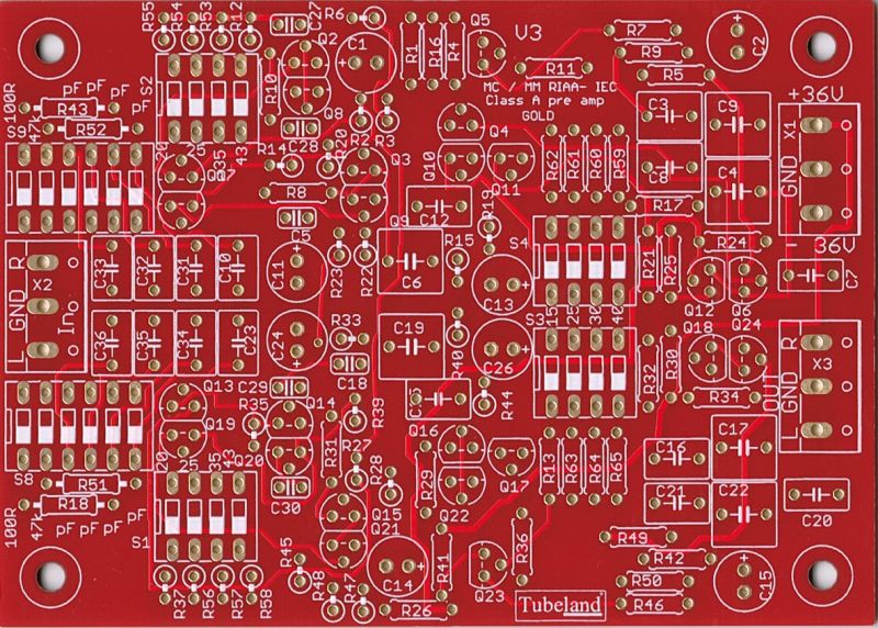 MM/MC Class A Ultra Low Noise zwei Stufen RIAA-Entzerrer 35 - 88db Schaltbar 2025 Premium Gold mit ZTX851,ZTX951 Transistoren
