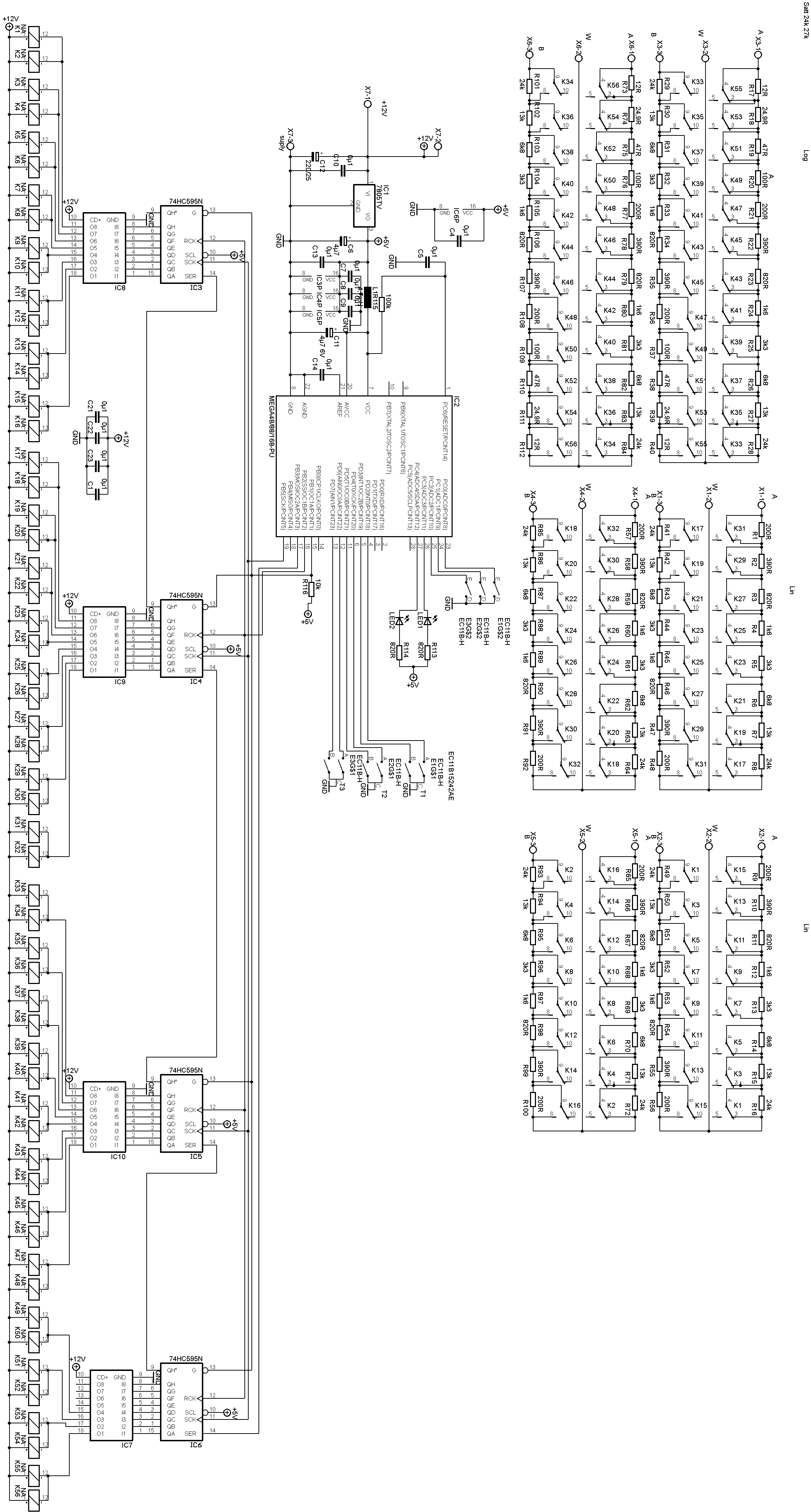 Statt eines Digital-Poti-Chips kommt hier eine controllergesteuerte, diskrete Widerstandsumschaltung zum Einsatz:
