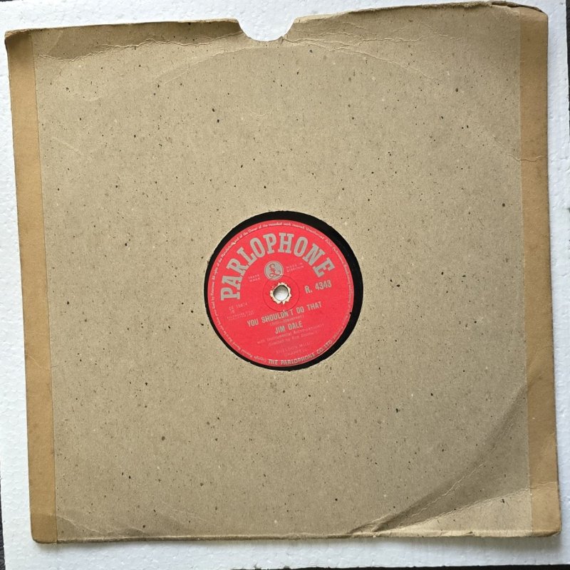 Inventarnummer: PL78-000089 Format: schellack RPM: 78 Interpret: Jim Dale Titel Seite A: Be My Girl Titel Seite B: You Shouldn't Do That Label: Parlophone Katalognummer: R. 4343 Matrize A: - Matrize B: - Zustand Platte: EX- Zustand Cover: G Jahr: 1957 Herkunftsland der Pressung: England Genre: Rock, n Roll Hinweis: Seltene 1950er Jahre Parlophone Single von Jim Dale mit den Titeln 'Be My Girl' und 'You Shouldn't Do That'. Diese Pressung aus England ist eine schöne Rarität für Sammler klassischer Pop-Vinyls. Materialtyp: shellac Jahrzehnt: 1950er Gewicht in g: 200 g Zustandsnotiz: - Differenzbesteuerung nach §25a UStG