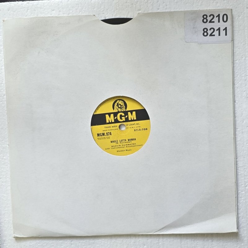 Inventarnummer: PL78-000096 Format: schellack RPM: 78 Interpret: Marvin Rainwater Titel Seite A: Whole Lotta Woman Titel Seite B: Baby, Don't Go Label: M-G-M Katalognummer: MGM.974 Matrize A: 57-S-708 Matrize B: 57-S-729 Zustand Platte: EX+ Zustand Cover: VG- Jahr: 1958 Herkunftsland der Pressung: England Genre: Rock, n Roll Hinweis: Diese historische 7" Single von Marvin Rainwater enthält die Songs ,,Whole Lotta Woman" und ,,Baby, Don't Go". Originalpressung des britischen Labels M-G-M aus den späten 1950er Jahren mit instrumentaler Begleitung. Ein schönes Sammlerstück klassischer Country-Musik. Materialtyp: shellac Jahrzehnt: 1950er Gewicht in g: 200 g Zustandsnotiz: - Differenzbesteuerung nach §25a UStG