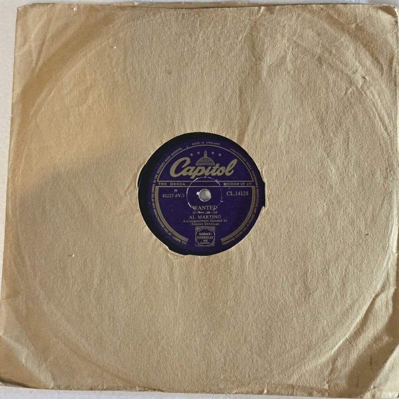 Inventarnummer: PL78-000163 Format: schellack RPM: 78 Interpret: Al Martino Titel Seite A: There'll Be No Teardrops Tonight Titel Seite B: Wanted Label: Capitol Katalognummer: CL.14128 Matrize A: CAP 12729 N Matrize B: CAP 12728 N Zustand Platte: VG+ Zustand Cover: G Jahr: 1954 Herkunftsland der Pressung: England Genre: Pop Hinweis: Diese seltene Single von Al Martino präsentiert zwei wunderbare Tracks, begleitet von Johnny Douglas. Der klassische Pop-Sound der 1950er Jahre macht diese Aufnahme besonders sammelwürdig. Eine typische Pressung aus England mit dem bekannten Capitol Label. Materialtyp: shellac Jahrzehnt: 1950er Gewicht in g: 200 g Zustandsnotiz: - Differenzbesteuerung nach §25a UStG