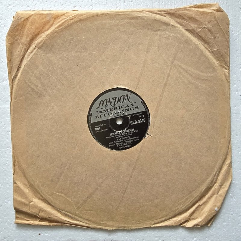 Inventarnummer: PL78-000196 Format: schellack RPM: 78 Interpret: Pat Boone Titel Seite A: Chains Of Love Titel Seite B: Friendly Persuasion Label: London Katalognummer: HLD.8346 Matrize A: MSD-1396-1 Matrize B: MSD-1395-1 Zustand Platte: VG+ Zustand Cover: G Jahr: 1956 Herkunftsland der Pressung: England Genre: Pop Hinweis: Diese historische Schellackplatte bietet zwei Hits von Pat Boone mit orchestraler Begleitung. Beide Titel versprechen nostalgischen Popsound der 1950er Jahre. Ein interessantes Sammlerstück für Liebhaber klassischer Musikpressungen. Materialtyp: shellac Jahrzehnt: 1950er Gewicht in g: 200 g Zustandsnotiz: - Differenzbesteuerung nach §25a UStG