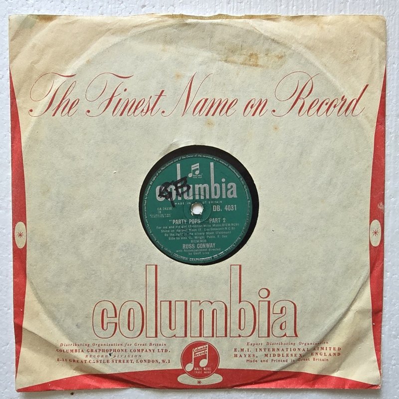 Inventarnummer: PL78-000203 Format: schellack RPM: 78 Interpret: Russ Conway Titel Seite A: "Party Pops" Part 1 Titel Seite B: "Party Pops" Part 2 Label: Columbia Katalognummer: DB 4031 Matrize A: CA 24237 Matrize B: CA 24238 Zustand Platte: G Zustand Cover: G Jahr: 1957 Herkunftsland der Pressung: England Genre: Pop Hinweis: Diese runde Columbia-Single von Russ Conway enthält die Titel "Party Pops" Part 1 und Part 2. Die Platte stammt aus dem Jahr 1957 und wurde in England gefertigt. Für Liebhaber klassischer Popmusik und Sammler historischer Vinylscheiben ist dies ein interessantes Exemplar. Materialtyp: shellac Jahrzehnt: 1950er Gewicht in g: 200 g Zustandsnotiz: - Differenzbesteuerung nach §25a UStG