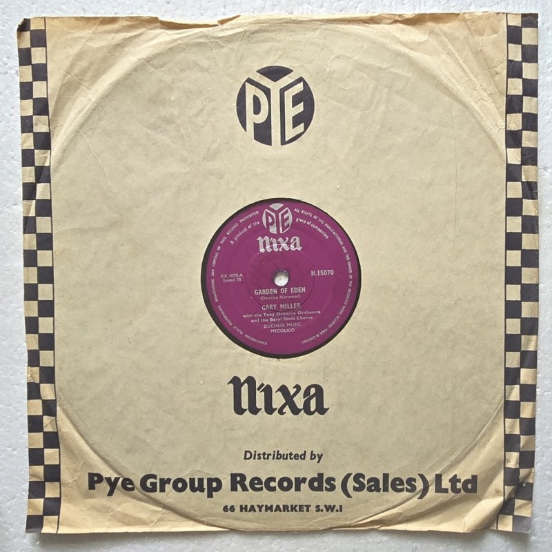 Inventarnummer: PL78-000299 Format: schellack RPM: 78 Interpret: Gary Miller Titel Seite A: Garden of Eden Titel Seite B: Since I Met You Baby Label: Pye Nixa Katalognummer: N.15070 Matrize A: XX.1070-A Matrize B: XX.1070-B Zustand Platte: VG Zustand Cover: VG Jahr: 1957 Herkunftsland der Pressung: England Genre: Pop Hinweis: Diese Schallplatte von Gary Miller mit den Titeln 'Garden of Eden' und 'Since I Met You Baby' wird vom Tony Osborne Orchestra und dem Beryl Stott Chorus begleitet. Die Platte erschien auf dem Label Pye Nixa in England. Ein schönes Stück Popmusik aus den 1950er Jahren. Materialtyp: shellac Jahrzehnt: 1950er Gewicht in g: 200 g Zustandsnotiz: - Differenzbesteuerung nach §25a UStG