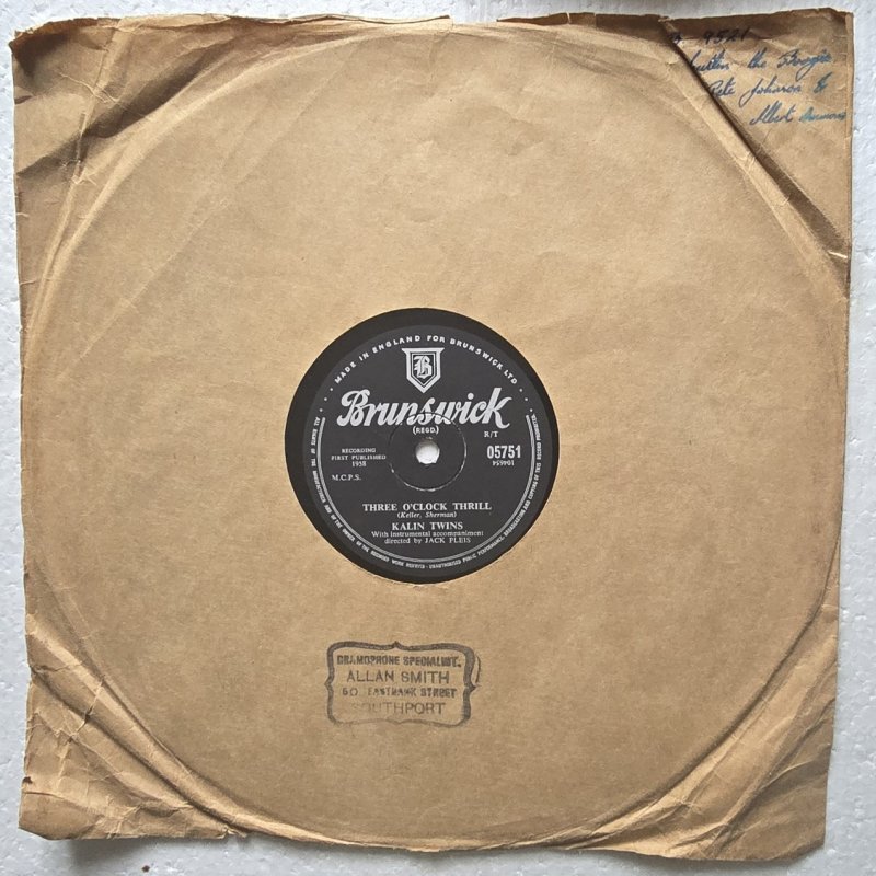 Inventarnummer: PL78-000309 Format: schellack RPM: 78 Interpret: Kalin Twins Titel Seite A: When Titel Seite B: Three O'Clock Thrill Label: Brunswick Katalognummer: 05751 Matrize A: 104655 Matrize B: 104654 Zustand Platte: EX- Zustand Cover: VG- Jahr: 1958 Herkunftsland der Pressung: England Genre: Pop Hinweis: Diese Single von den Kalin Twins enthält die Titel 'When' und 'Three O'Clock Thrill' mit instrumentaler Begleitung unter der Leitung von Jack Pleis. Die Platte stammt aus dem Jahr 1958 und wurde in England auf dem Label Brunswick veröffentlicht. Ein schönes Stück Popmusik aus den 1950er Jahren. Materialtyp: shellac Jahrzehnt: 1950er Gewicht in g: 200 g Zustandsnotiz: - Differenzbesteuerung nach §25a UStG